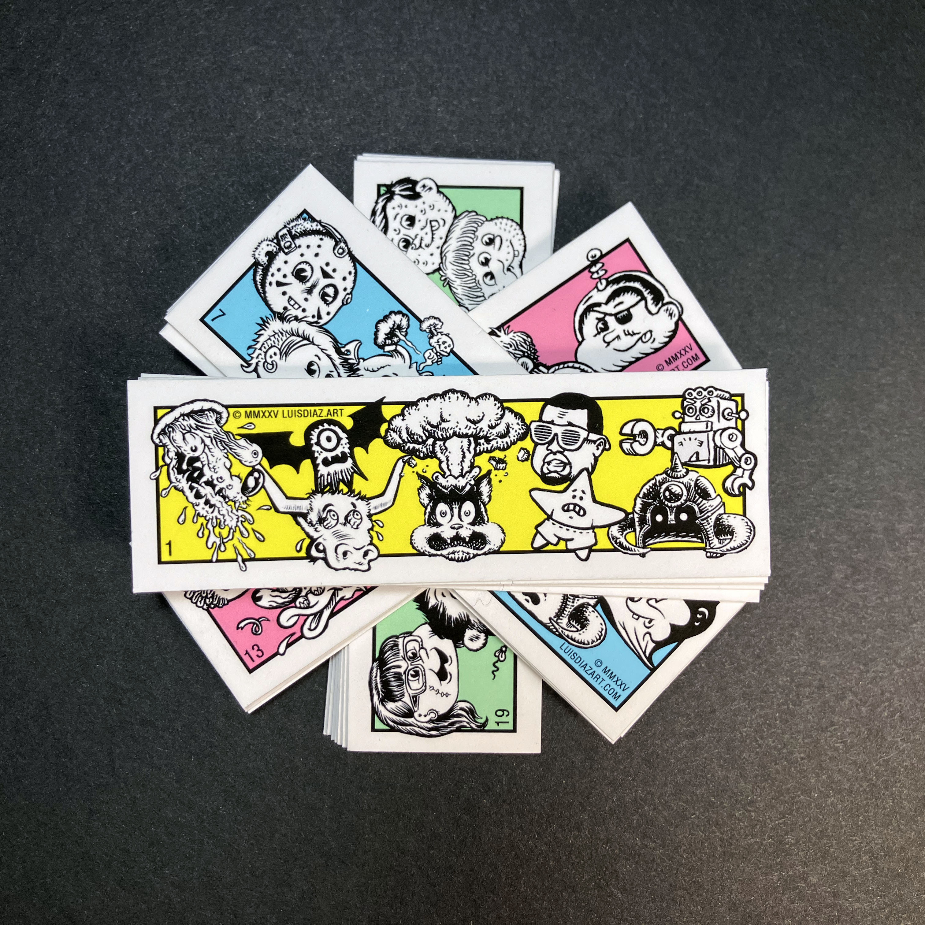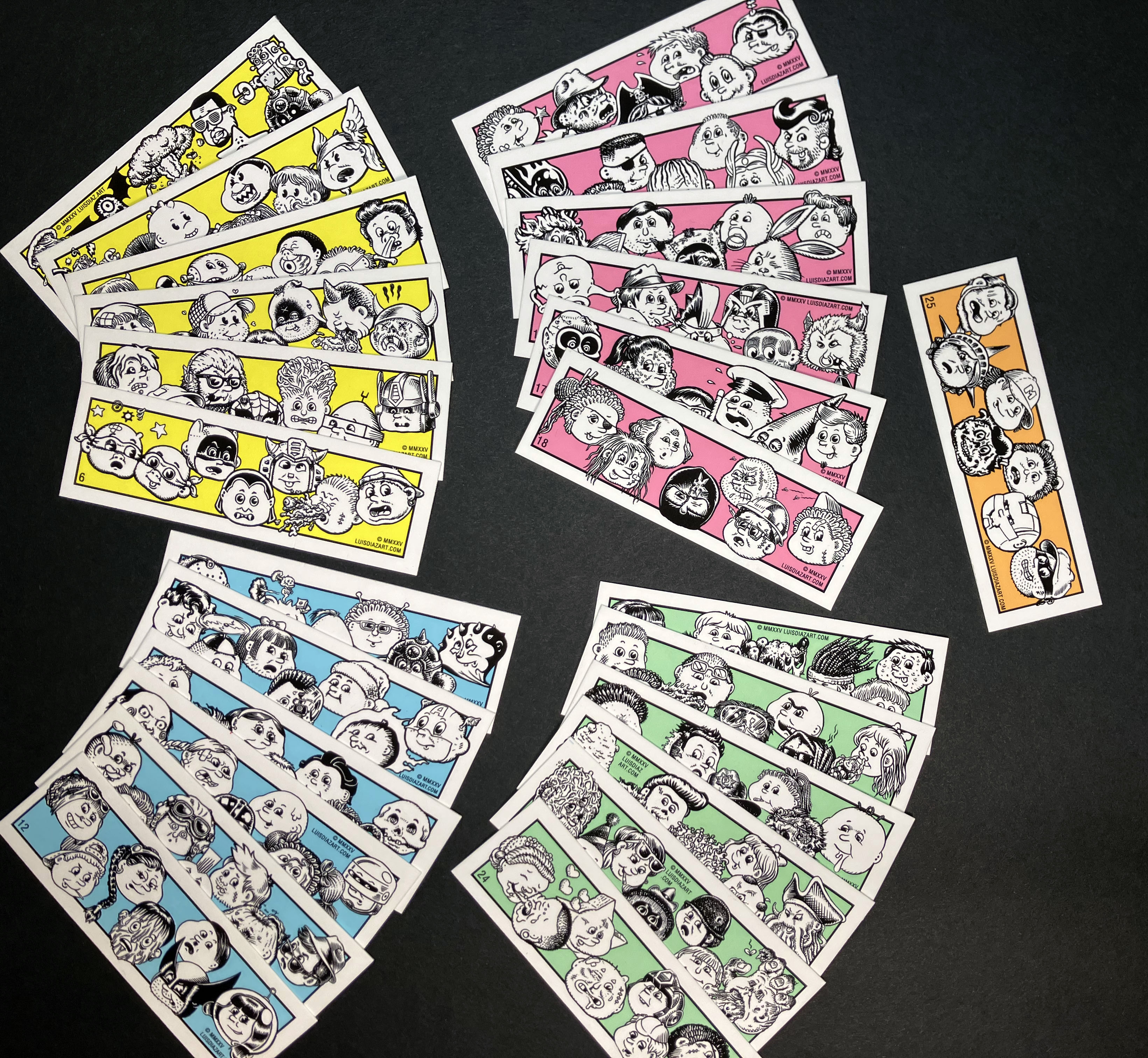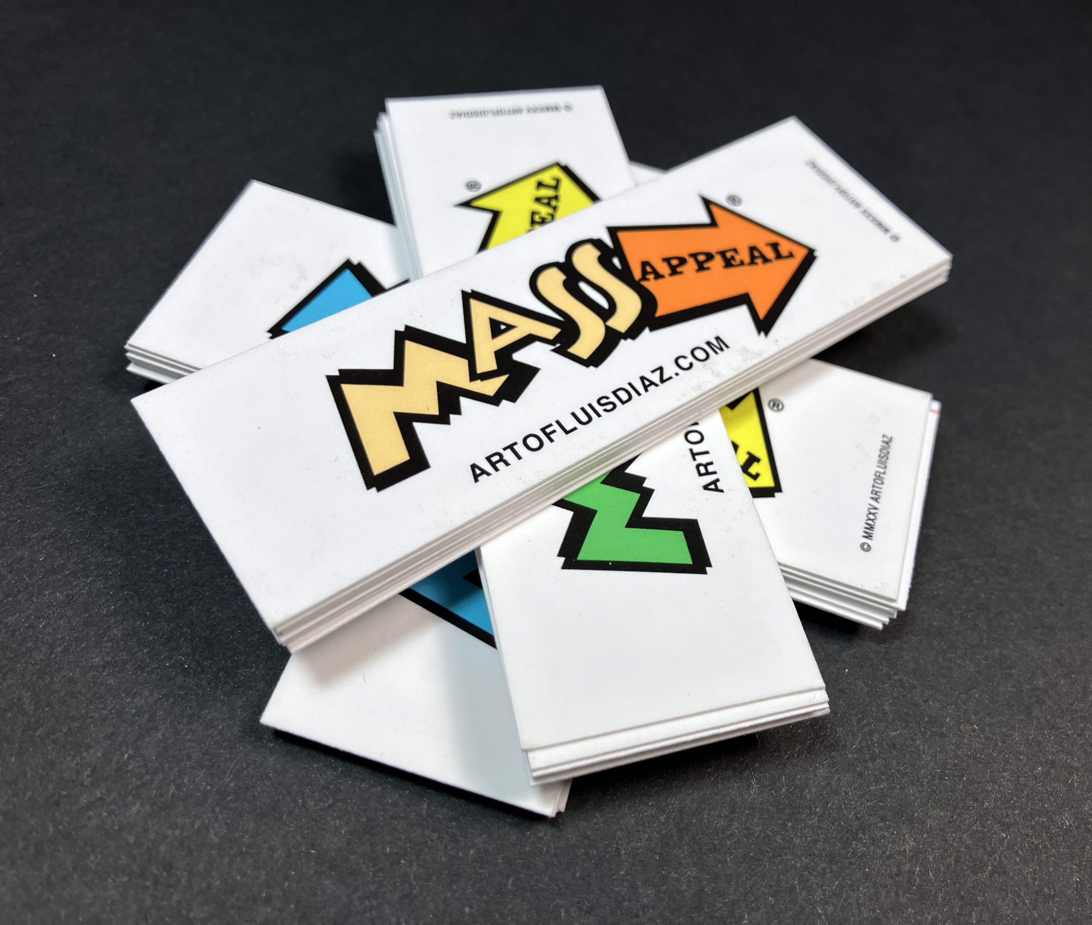 The idea behind these paper strips was when printing trading cards (for 20 years now!) there was always a strip of unused paper when cutting the cards down to sets. I didn't like wasting away paper which would have amounted to a lot by now. Instead I chose to use those strips to have something I can stick inside orders as a gift. Whether as a tag taped to the back of an envelope or inside the new Mass Appeal packs, they give you a nostalgic feeling of those packs from the past that had gum or other items. I remember feeling that when I was a kid and somehow knew collecting cards was just that more fun.