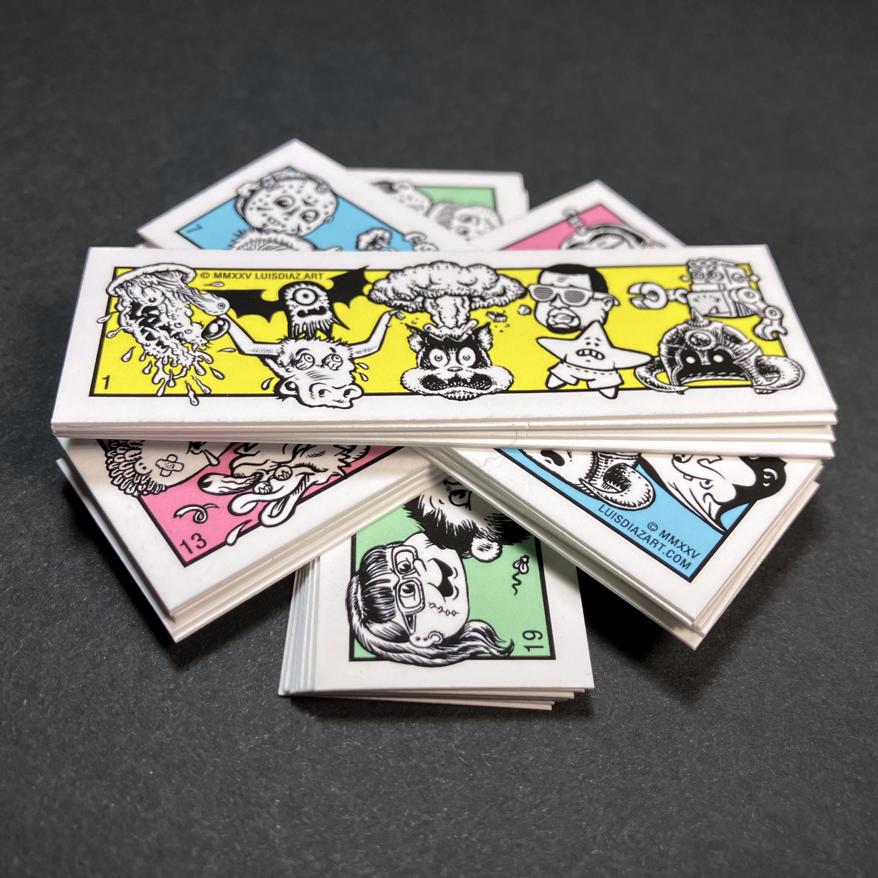 A Random Promo Tag is in every pack and each one is numbered and has a different set of characters. Each promo tag back is a unique color combination. This complete set contains all the ones you may have missed. Because they were used at the bottom or around the trading card layout sometimes there are tiny cuts or indentations because that is where the blade would stop. I try to know go over, but I'm human! So it makes each tag have its own unique imperfections.