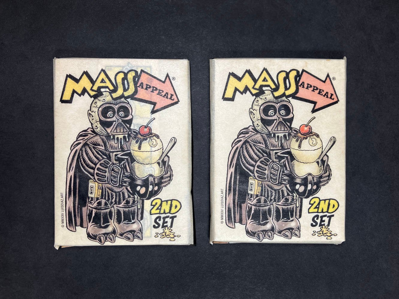 Each new set will contain a new theme. Luis Diaz is known for his work as an illustrator and for his previous Parody paintings including Garbage Pail Kids & Wacky Packages (2003-2010) and other entertainment brands. Diaz has made a reputation for creating unique original illustrations inspired by his love of cartooning and beautifully design products.