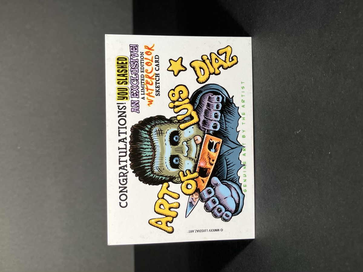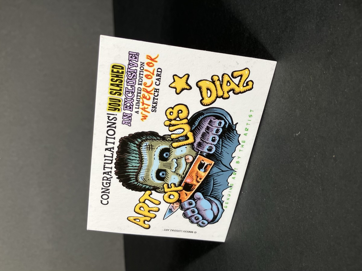 Hand painted sketch card by Parody Artist Luis Diaz with fine art watercolor. Each one is numbered and you will get one numbered from 1-25. Image is a sample image of one of the 25 sketch cards. Some might have alternative color choices, but usually consistent to the image pictured.
